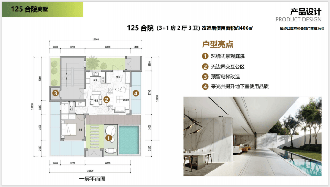 别墅产品,则是商墅125的产品,宣传写到「独门独院、1+1赠送」等卖点。