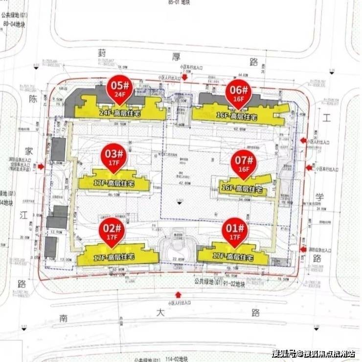 根据设计方案显示,该地块拟建5幢16-17F高层住宅、1幢24F高层住宅以及若干社区配套用房,共计规划约436户。