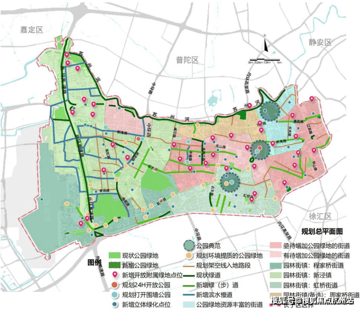 长宁区绿地公园规划总平面图,图源《上海市长宁区公园城市规划(2024-2035年)》