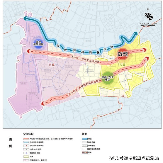 串联中山公园、上海国际体操中心、虹桥文化艺术中心等文化节点和轨道交通 2 号线沿线 TOD 社区,打造商业、商务、文化融合的都市发展带。