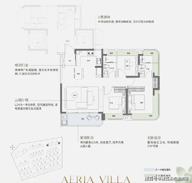 主卧更别出心裁地设计了两大270°转角飘窗,在同面积段产品中实属罕见,瞬间将睡眠区的景观层次与奢华感拉升到新的高度。