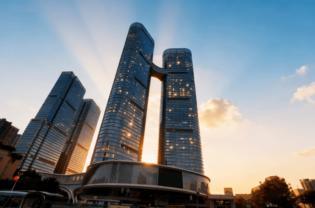 作为主城二环内近十年罕见的超高层地标,项目以约243.9米双塔造型和蓝调镜面玻璃幕墙,塑造鲜明的城市视觉焦点,极大提升资产的辨识度与昭示性。