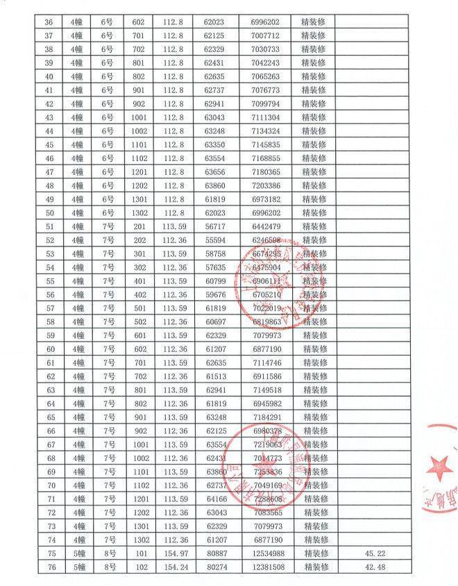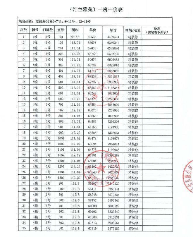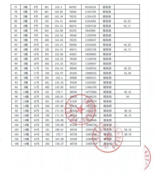 48、均价:即物业的平均销售价格,将本物业各套房子的销售价格相加之后的和除以各单位建筑面积的和数,即可得出每平方米的均价)。