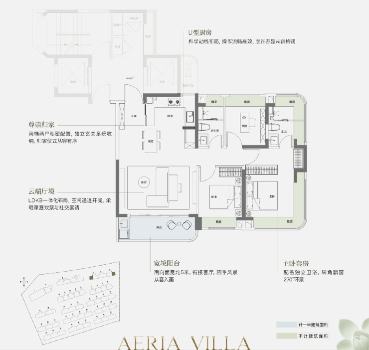 。这一超越常规的尺度,为室内带来了充沛的日照与开阔的视野;约5米宽的客餐厅,搭配等宽的阔境阳台